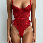 CRUSH er en erklæring om lidenskap. I spektakulær rød blonde med hjerter dekorert, kombinerer dette bodyet sensualitet, finesse og couture-appell. Et fascinerende plagg, designet for å fremheve kroppen og vekke begjær med hver bevegelse.