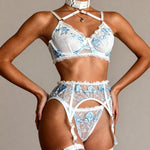 • 5-delt sett – BH + strømpeholder + stringtruse + halsreim + lårbånd