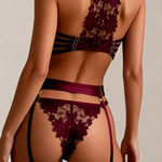 Detaljer som gjør en forskjell JOLYE-settet skiller seg ut med sine nøye gjennomtenkte detaljer. BH-en med bøyle og blonderygg gir perfekt støtte og en naturlig form som gir brystet ditt en forførende touch. Den elegante og nøye utformede trusen fremhever kurvene dine harmonisk. Strømpeholderne og strømpebåndene tilfører en forførende raffinement for et komplett glamorøst utseende.