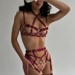 • 4-delt sett – BH + strømpeholder + string + lårbånd