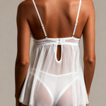 • Kort babydoll-nattkjole laget av transparent hvit tyl